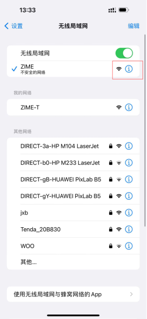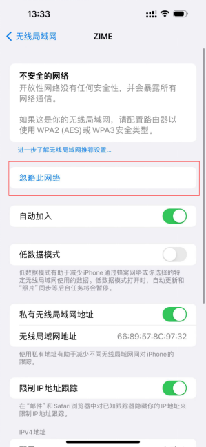 暂时的解决办法:忽略之前保存过的ZIME等SSID名称后,重新连接,具体操作如下: