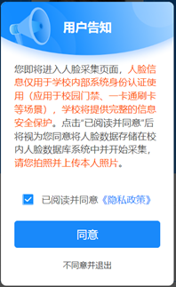 2.认真阅读“用户告知”相关内容,如无异议请勾选“已阅读并同意”,并点击同意按钮进入下一页面,详见下图: