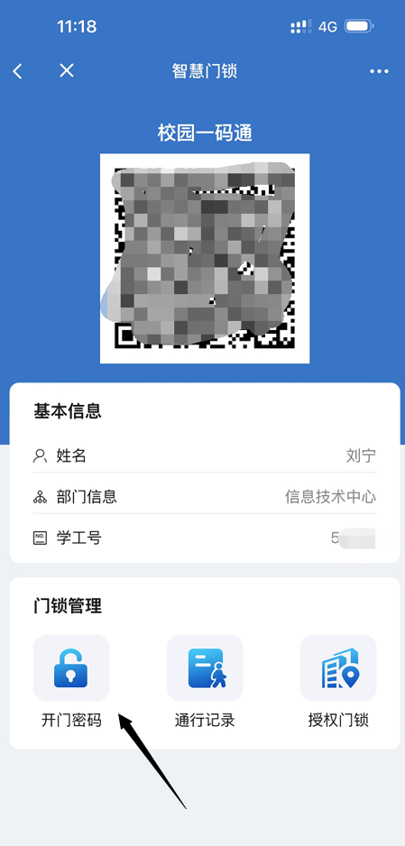 平台模式下,每个教职工都有一个自己的开门密码,在企微应用的开门密码处可查看及更改。注意平台模式下的密码,每位教工都有一个,可通行授权给本人的所有门锁,不要轻易给他人使用。