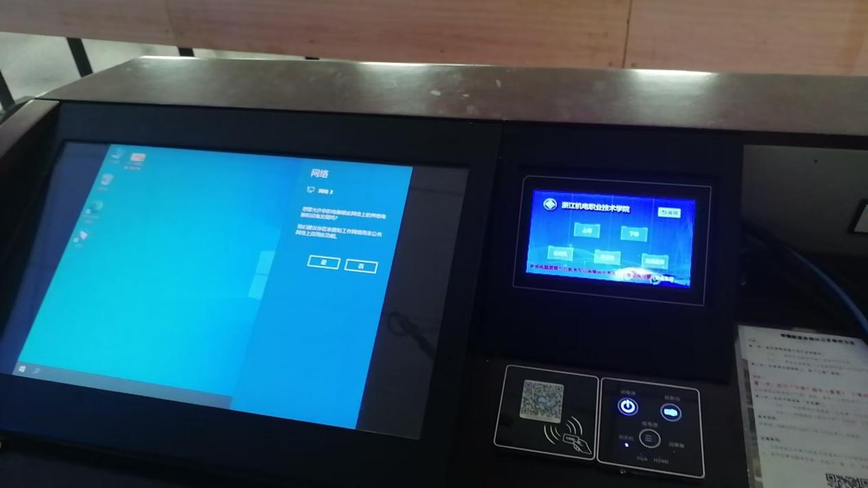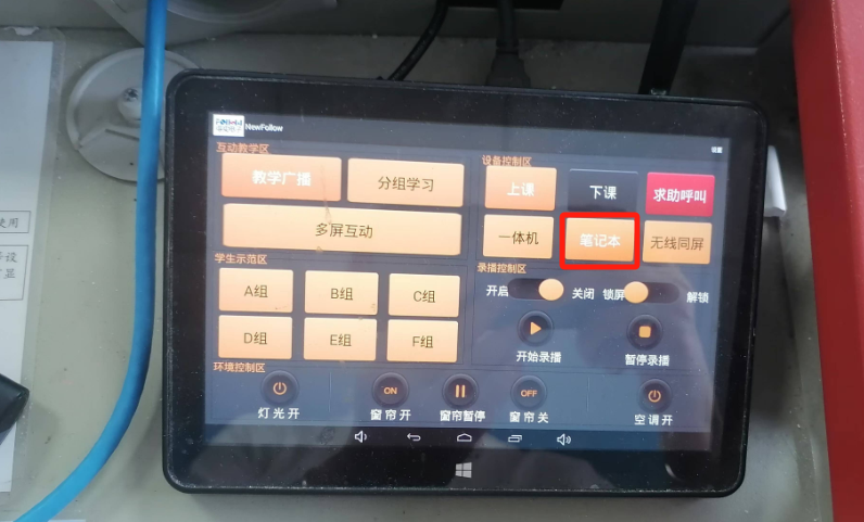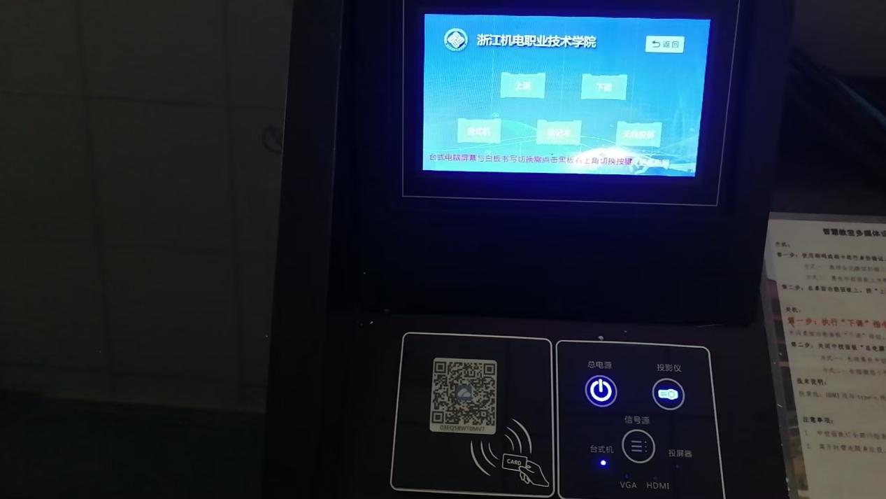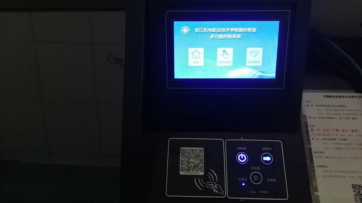 教师扫码或刷卡开机后,再点击蓝色液晶面板的“上课”指令。
