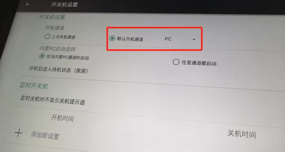 教师在扫码自动开机后,若发现希沃大屏是非PC端,需要设置下开机通道。
