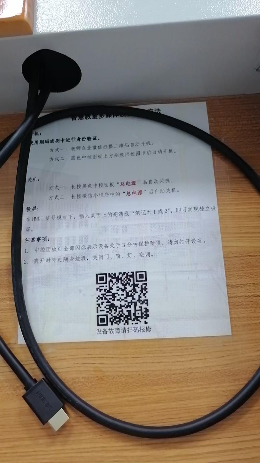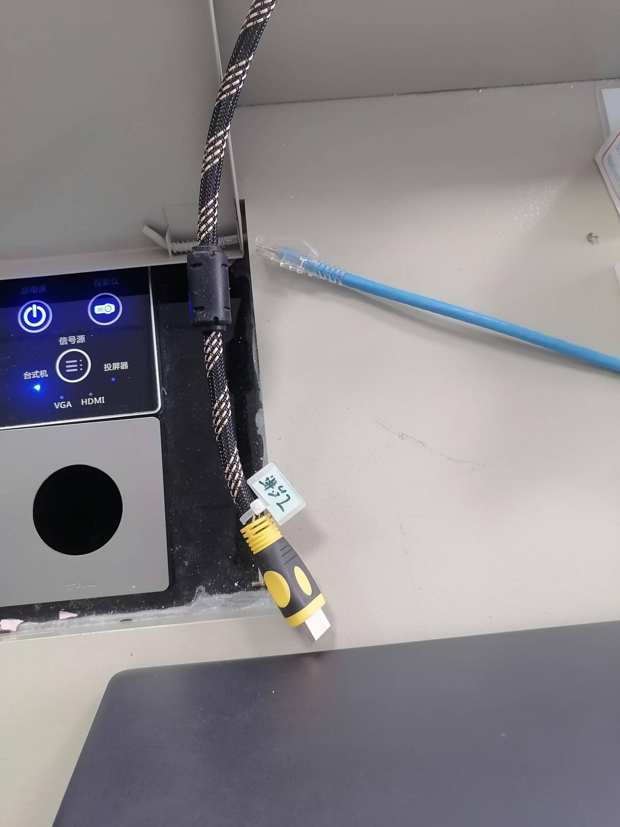 在HDMI模式下,直接插入桌面上的“笔记本1”“笔记本2 ” 不用切换信号,笔记本1 是讲台后面的希沃屏,笔记本2 是门口的希沃大屏,拔掉高清线后,信号可自动返回PC。