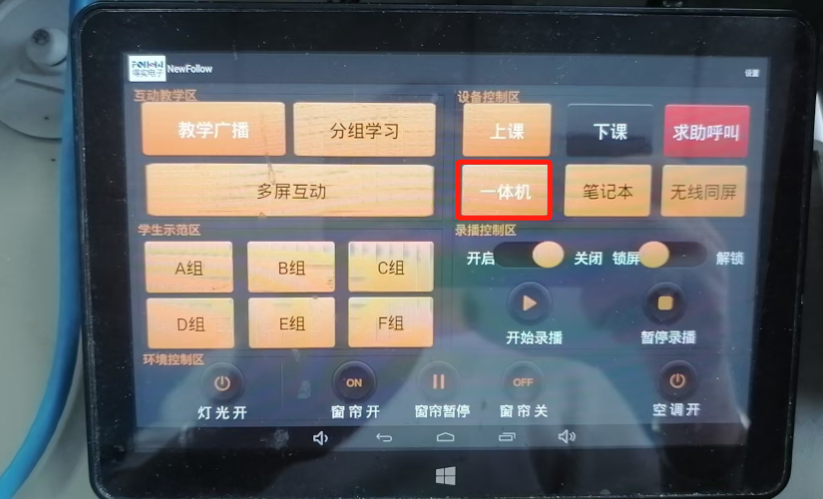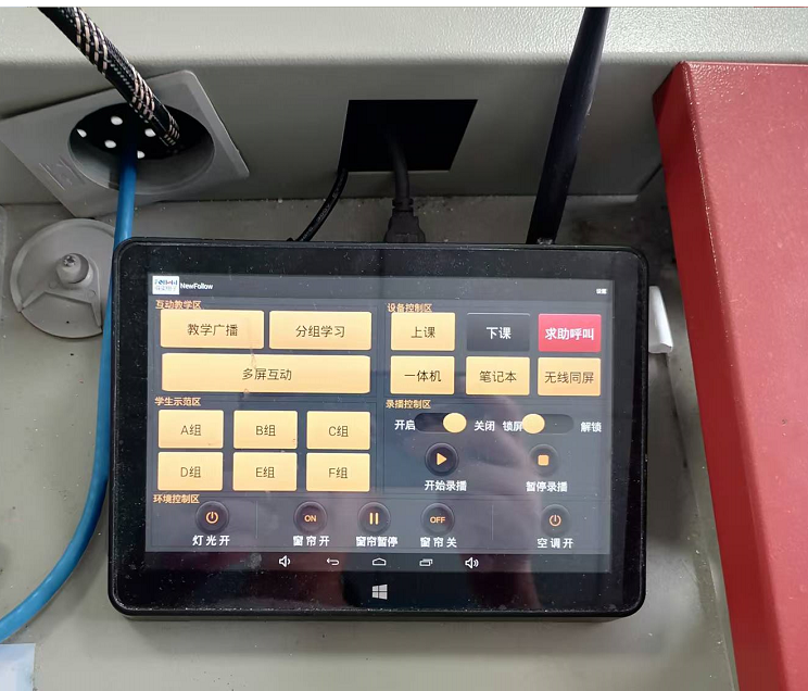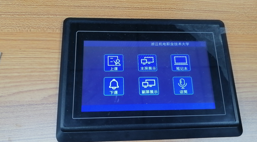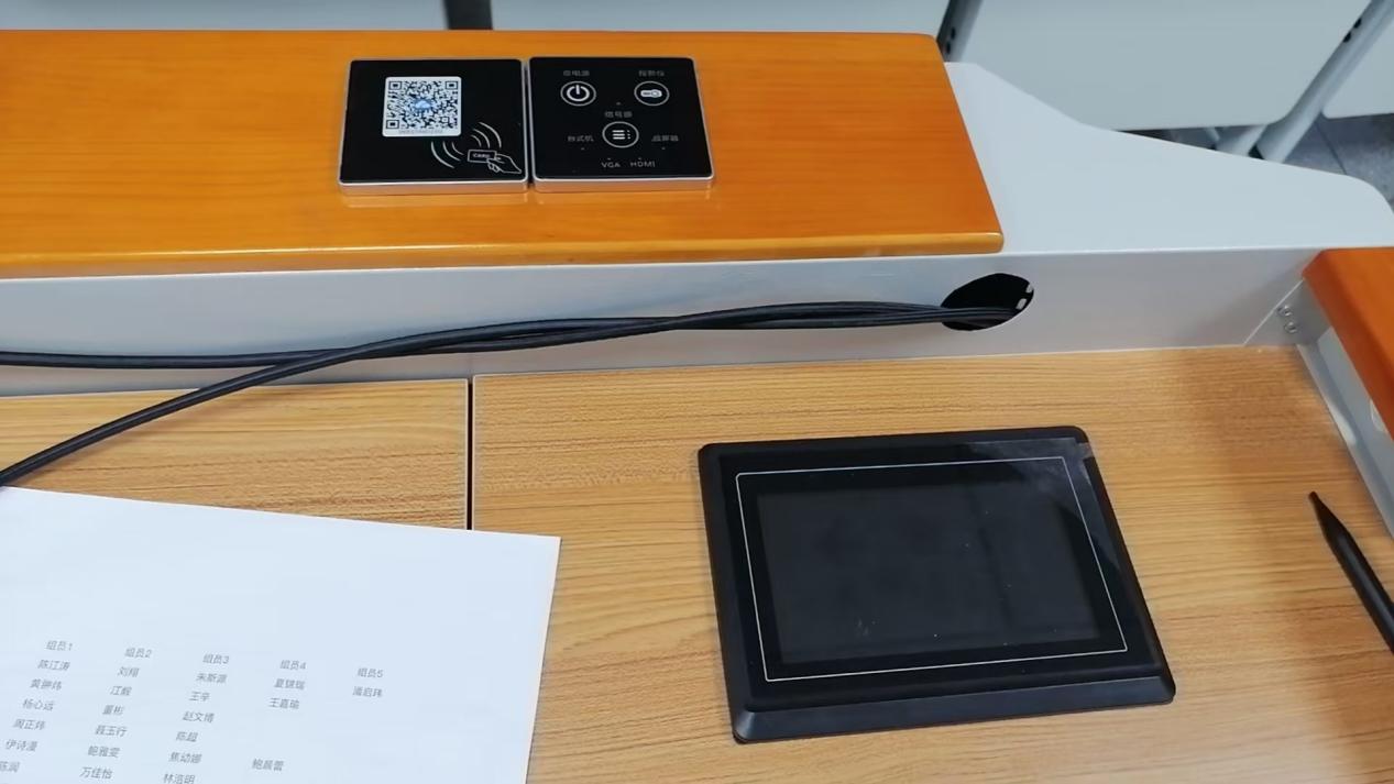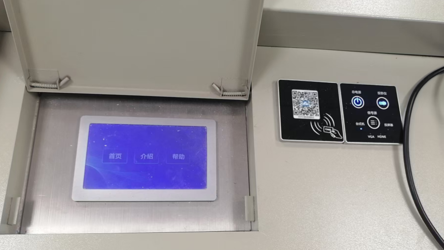 教师微信扫码或刷卡自动打开中控,再在桌面上的液晶功能面板点击“上课”。