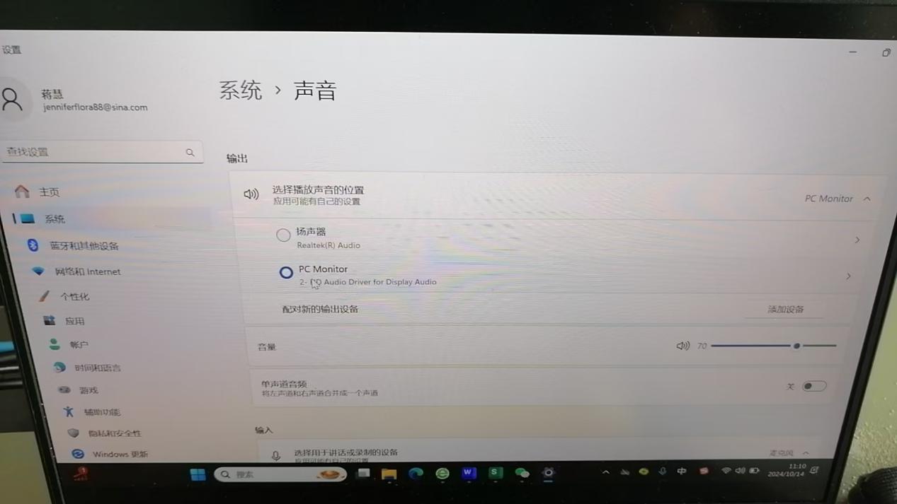 笔记本投屏后,笔记本的声音从功放音响出来。