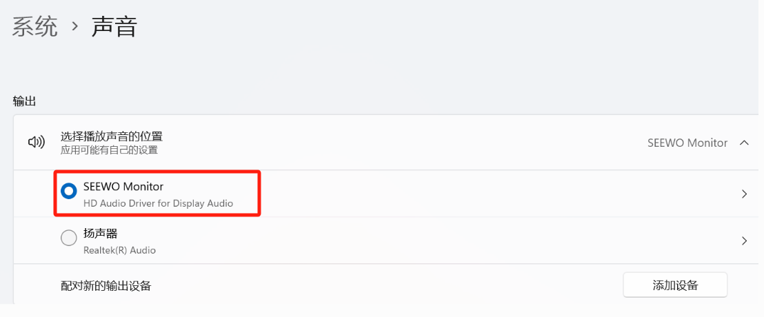 笔记本投屏后,笔记本的声音设置,桌面鼠标右键选择“显示桌面”,进入声音选项,选择“SEEWO Monitor或其他PC MOmonitor”,投屏后自动默认选择此项。