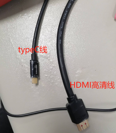 将HDMI高清线或typeC线二选一插入笔记本对应的插口(注意:不能都插入,否则会影响PPT的放映显示)。