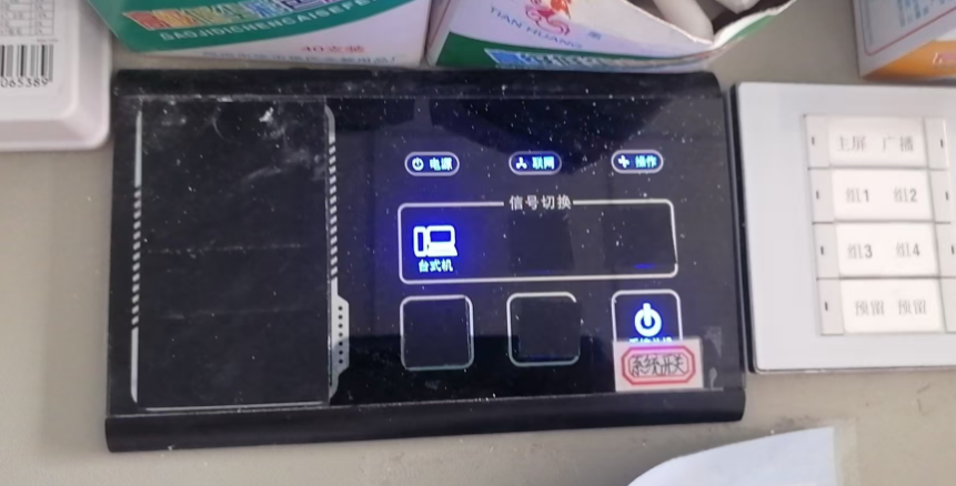 判断中控设备是否有电的依据是面板上有个蓝色信号灯在闪。