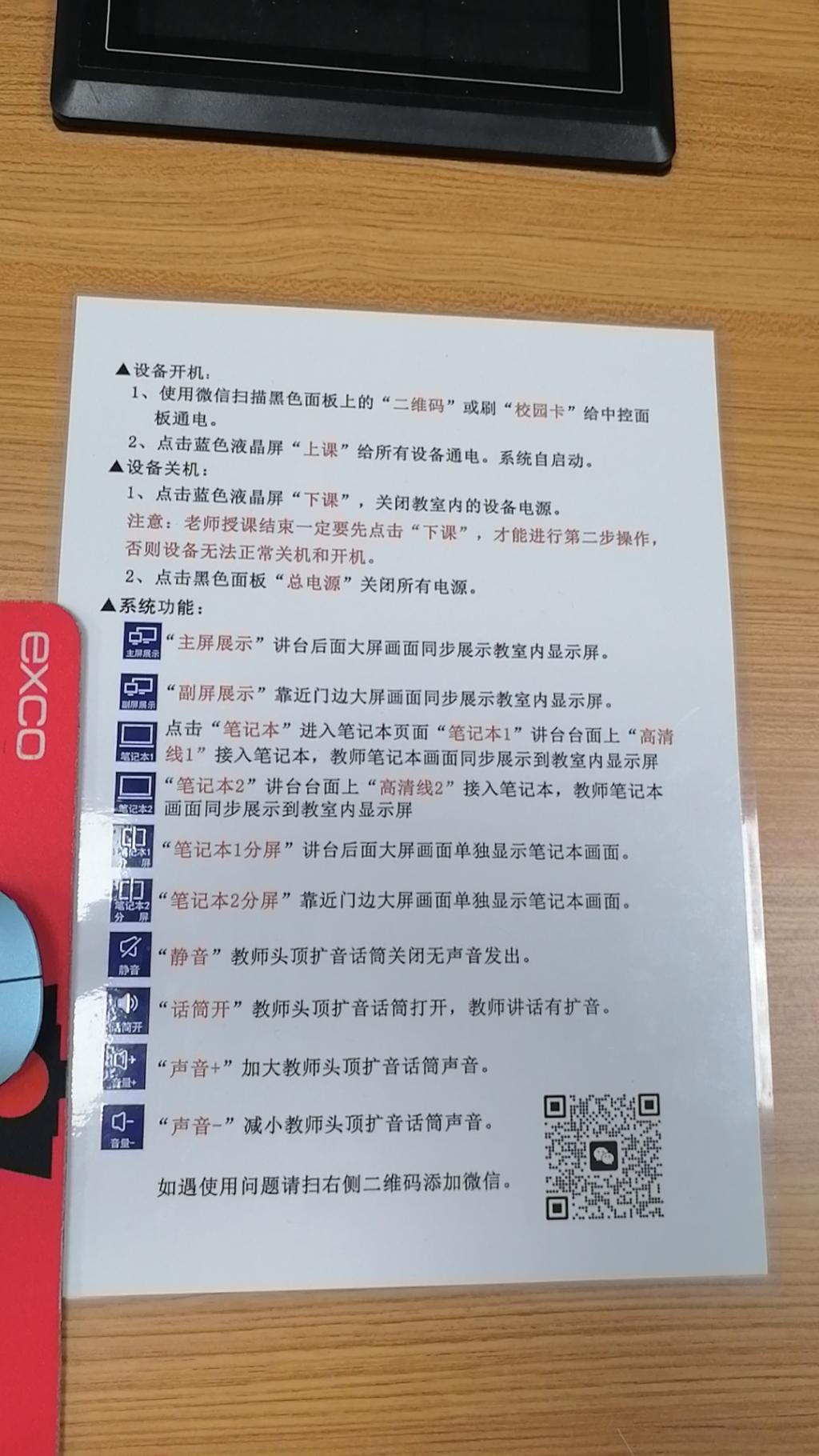首先执行桌面上的功能面板“下课”指令(重要下课时需要关闭LED大屏),等待1分钟后,再关闭中控设备的“总电源”。
