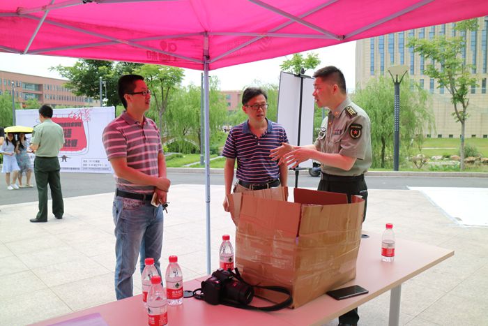 大学生入伍,是新形势下加强国防和军队现代化建设,为部队输送高素质人才的必然要求,也是发挥军队育人优势,促进青年学生成长成才的重要举措。为了扎实做好taptap点点2018年大学生应征入伍工作,充分激发广大学生参军入伍的热情,5月24日上午11点,长安校区综合办协同人武部、学生处、海宁市人武部征兵工作组一行7人,在长安校区食堂门前开展校园征兵宣传暨政策咨询活动。