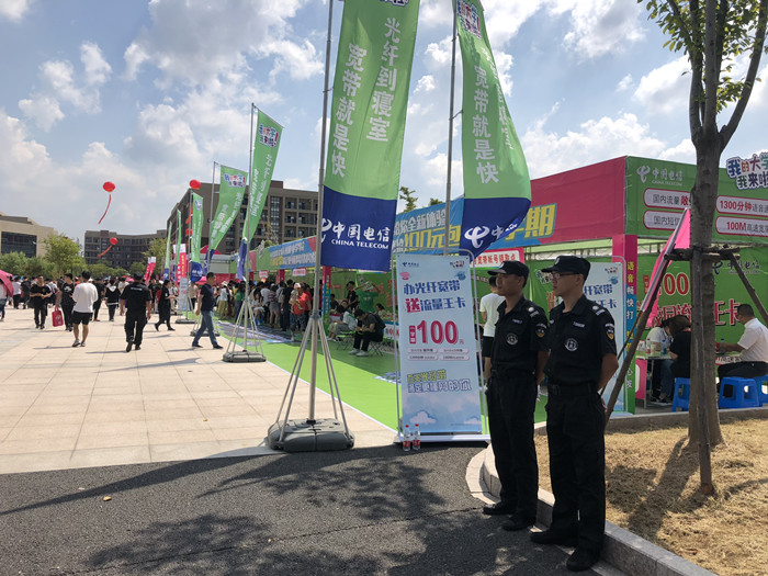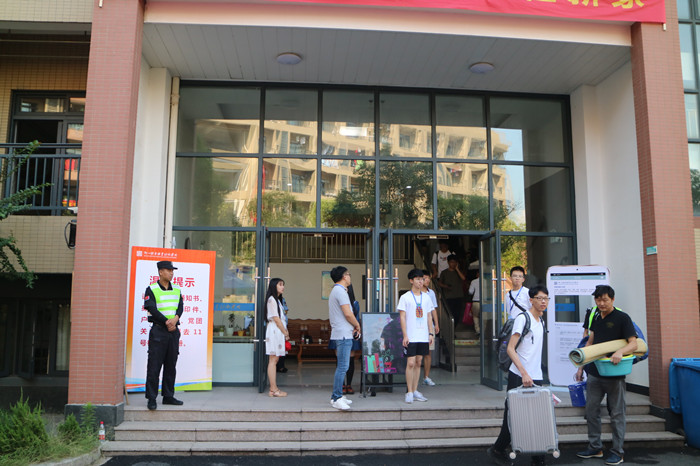 在交警、公安民警、综合执法、保安队员和学生志愿者的共同努力下,顺利完成了迎新日安全保障、治安管理和交通出入的各项工作。校园安保人员在学校的各个通道和区域,实行校内“西门进、东门/北门出”的单行线通行方案,在每个重要路口与停车场进行交通疏导。在校区西门、北门、东门各门口区域,由交警指挥车辆停车与出入,通过各种有效举措确保交通井然有序。同时,交警还成立两组巡逻队,负责学院周边的道路巡查管理,协助并配合做好校内校外的交通秩序引导。在报到区、新生缴费区、校园营业厅办理区,均配备了安保人员进行秩序维护和疏散引导。在新生公寓的每一幢宿舍门口设置了警卫、保卫、志愿者,防止闲杂人员进入宿舍楼内。