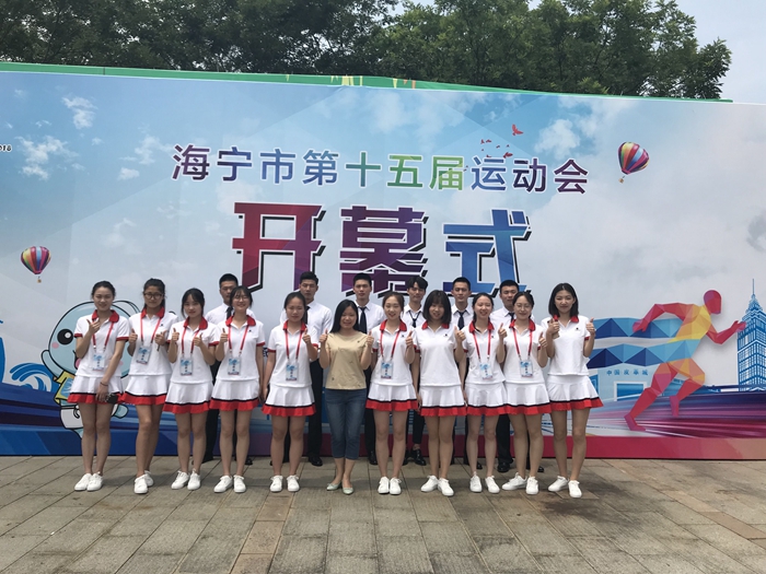 活动五:5月13日,组织50余名志愿者全程参与海宁市第十五届运动会旗手、引导员和志愿者服务工作。志愿者们饱满的精神状态和充满青春朝气的笑容给大家留下了深刻的印象,在志愿者们的辛勤努力下,开幕式取得了圆满的成功。通过此次活动,弘扬了“奉献、友爱、互助、进步”的志愿服务精神,展现了我院学生有理想、有追求,有担当、有作为,有品质、有修养的良好的精神面貌。
