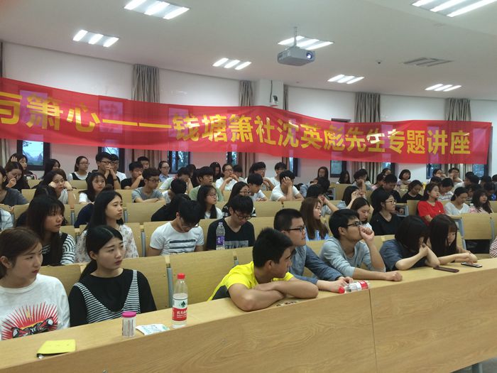 首先,沈英彪社长给学生们做了“箫与箫心”专题讲座。沈社长给同学们介绍了箫的起源,材质、音色、形制以及箫的应用。并详细解释了何为“箫心”?——中国文人对箫在历史演变过程中的审美文化体验内化后,与本体紧密结合,成为可以摆脱具象存在的内在心理诉求。沈社长指出,箫这件乐器,形制上是很简单的,但内涵非常丰富,所谓大道至简,大音稀声就是这个意思。沈英彪先生用32个字对箫进行总结:构造简单,内涵深邃;华贵天籁,闻者皆醉;气指唇舌,缺一不可;精神形气,天人合一。现场还邀请了俞雪娇、汪冰冰、邱容、潜吉忠等名家进行演奏,让同学们感受到中国古典民乐之美。