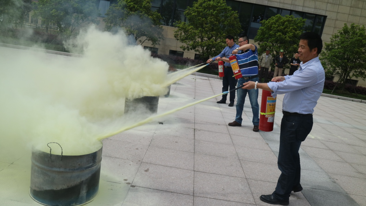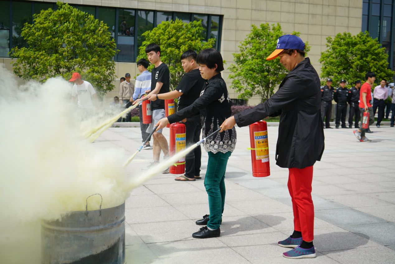 (图为综合办保卫宣讲灭火器的鉴定和使用)