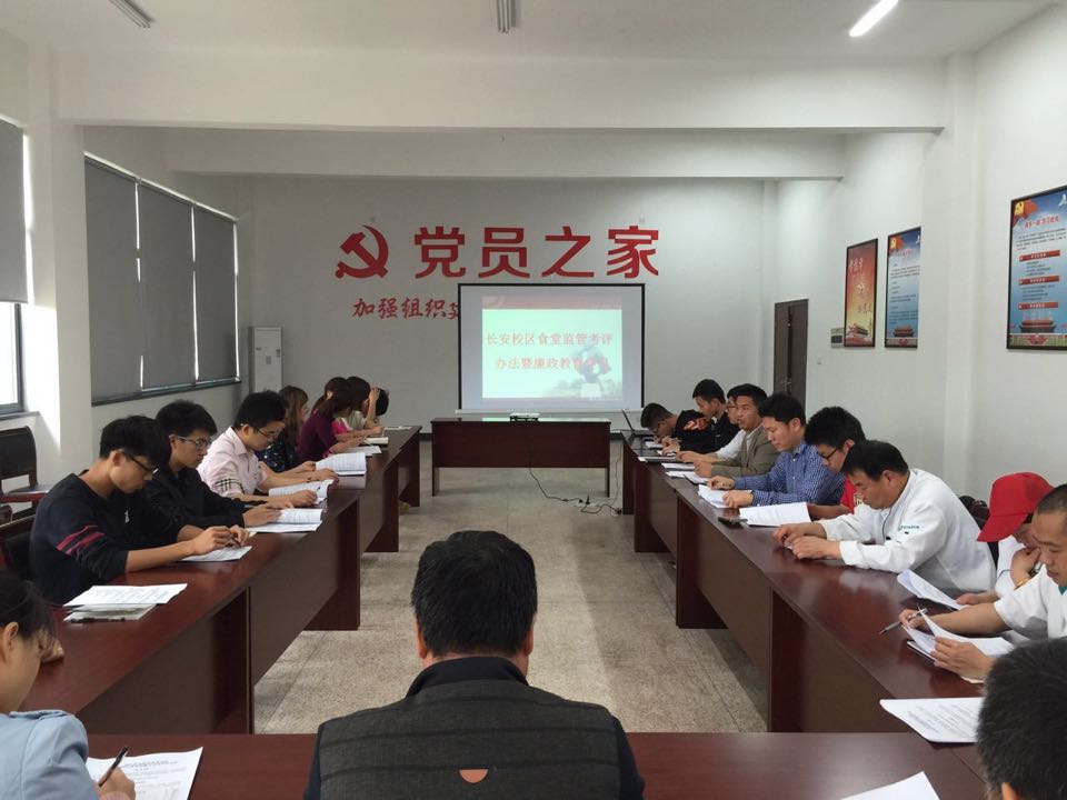 为进一步规范食堂管理,加大师生民主参与监督与管理的力度,提高食堂的饮食和服务水平,提升学校师生就餐满意度和就餐率,4月26日下午,由长安校区综合办牵头组织,在长安校区21号楼党员之家会议室召开了《长安校区食堂监督与考核评价办法》解读布置暨廉政教育学习会议。