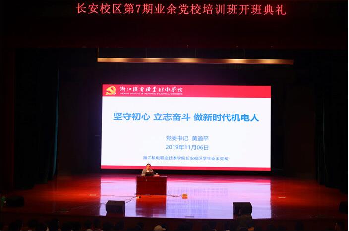 11月6日晚上,长安校区第七期学生业余党校开班典礼在小剧场隆重举行。学院党委书记黄道平出席了开班典礼并作专题报告,长安校区管委会党总支书记陶勇、党总支宣传委员吴兴、学工部副部长方惠玲、长安综合办副主任余涛、各学生党支部党员、各系选拔推荐的193名学员参加开班典礼和党课学习,开班典礼由方惠玲老师主持。