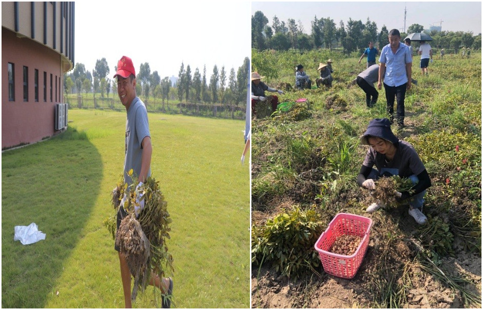 在此次喜迎全国第36个教师节到来之际,校区师生用行动诠释劳动最光荣这一特殊意义。通过劳动实践教育充分帮助机电师生树立正确的劳动观念,将“崇尚劳动、尊重劳动”内化为精神境界,劳动的过程,既能去认知和学习,又能感受劳动在人生中的价值,同时,也让师生在劳动中能愉悦身心、强健体魄、增强意志力;为今后在工作和生活中“辛勤劳动、诚实劳动、创造性劳动”打好坚实基础。“锄禾日当午、汗滴禾下土”,尽管烈日当空,汗水湿透衣背,大家享受劳动的快乐,享受丰收的喜悦,此次采摘是上半年长安校区师生利用桃李林的空地种植的成果检验,共收获花生3000余斤,将统一由校工会负责发放,剩余部分由食堂烹饪后供师生在用餐时免费品尝。