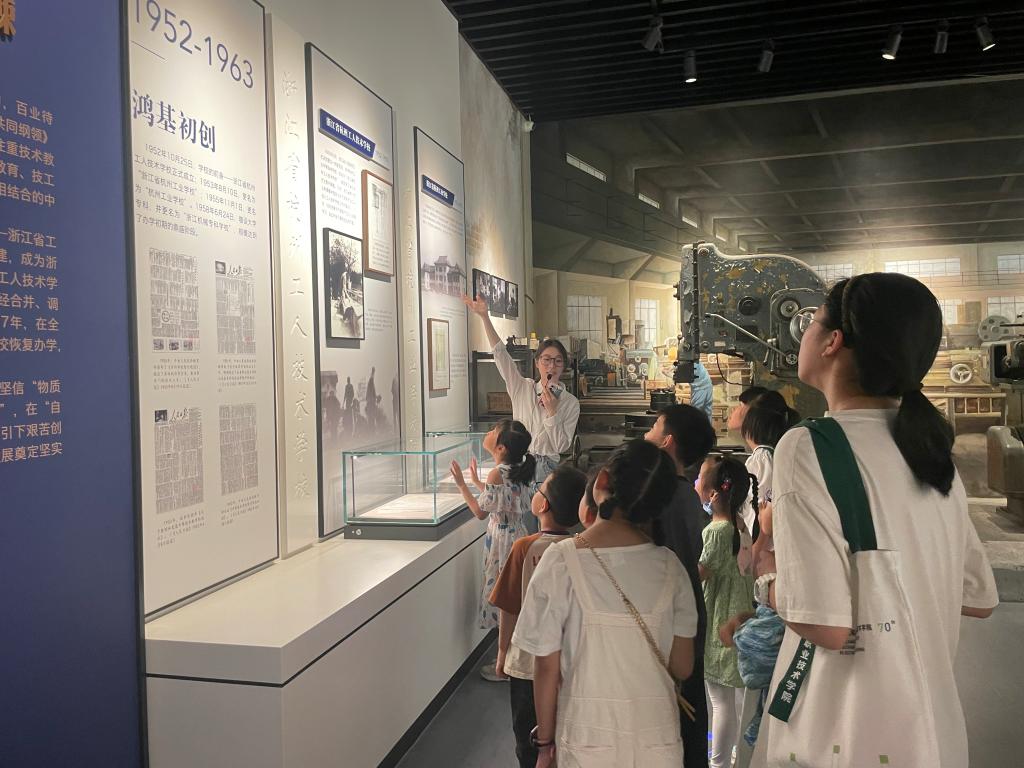 在浙江机械工业博物馆和校史馆,由党委宣传部推荐的3位优秀的学生博物馆讲解员认真而又细致的讲解下,孩子们仔细聆听浙江省机械工业史和浙江机电职业技术学院70周年的校史,在声光电和互动中,仿佛穿越历史长河,与文物对话、与历史对话,一起感受机械工业文明的永久魅力和时代风采,享受社科知识的文化大餐和精神盛宴,是一次生动的,沉浸式的工科启蒙教育。浙江机械工业博物馆是省内第一所也是唯一一所以机械工业为主题的博物馆,博物馆通过实物、图片、场景复原、声光电等多种表现形式勾勒浙江机械工业发展与历史的变迁,充分展现浙江机械工业发展全貌。近期,浙江机械工业博物馆被评为海宁市社科普及基地。