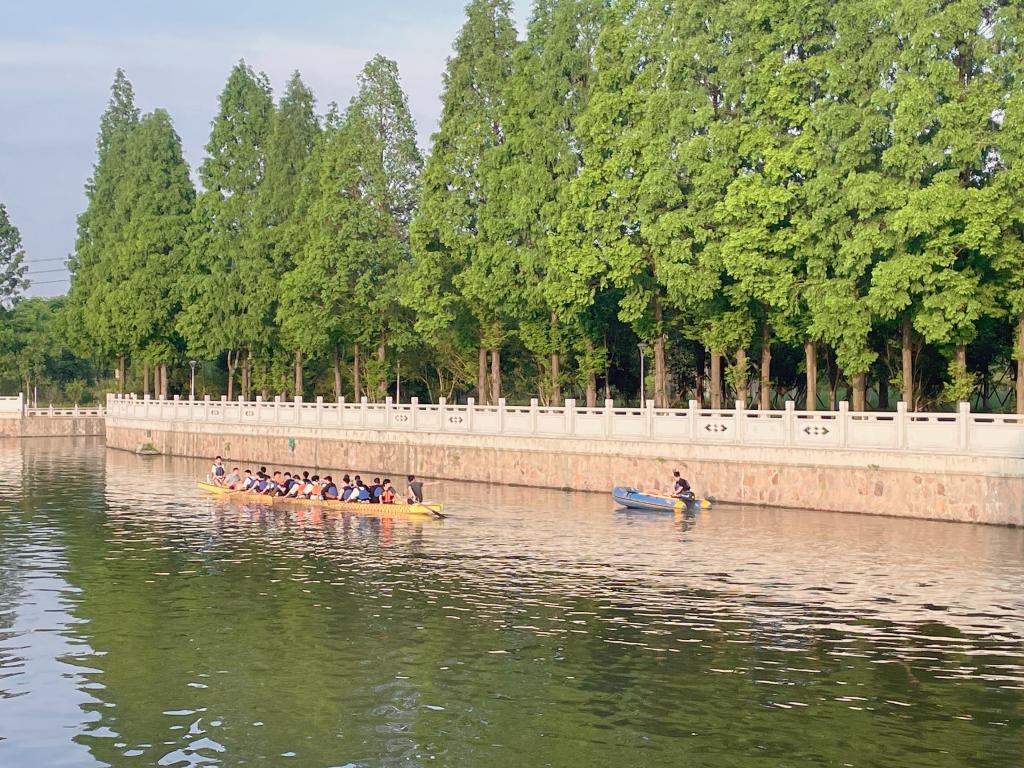 由于同学们都是第一次参赛,海宁校区综合办将安全问题放在首位。在一个多月的时间里,龙舟队每周至少训练3天,为了不耽误同学们上课,训练时间都集中选择在周三和周末,每一次训练,海宁校区综合办相关负责老师和属地政府的专业技术人员,都会在现场指导和保障同学们训练。同时,校园建设和后勤处尽最大力量做好同学们的后勤保障。