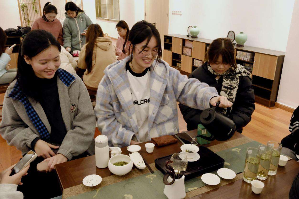 讲解与品鉴相融,礼仪与感悟共生。学生们于观色、闻香、品味间,不仅尝到了茶汤的丰富层次,更读懂了每一片茶叶背后,藏于工艺里的匠心、立于风土中的底蕴、流于岁月间的哲学。茶,在此刻成为连接古今、沟通自然与人文的无声信使,让千年文脉在杯盏间缓缓流淌。