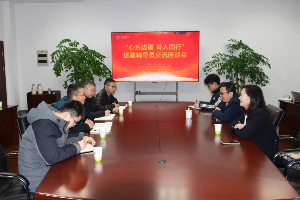 1月19日下午,学校召开援疆辅导员座谈会,欢迎taptap点点援疆辅导员杨秀飞老师返校交流。学校党委副书记陈剑波、学生工作部部长王汇、数字商贸学院党委副书记(主持工作)钟毅、林佳辉及杨秀飞老师参加了本次座谈。