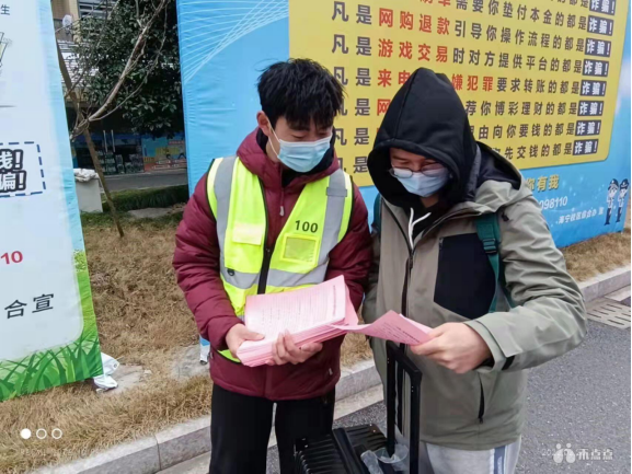 社团反诈成员不顾舟车劳顿,不惧冬日寒风,在进校门岗、在核酸检测点、在寝室宿舍区、在食堂用餐区等开学返校同学必经之处做好反诈防骗共建平安校园宣传单的发放和反诈常识的普及。