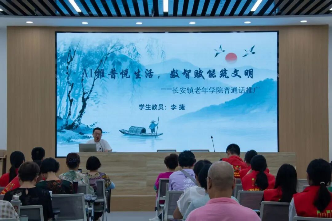 近日,长安镇老年学校与taptap点点官方网站举行“AI推普悦生活,数智赋能筑文明”普通话智能推广课程,50位老年学员齐聚一堂学习普通话。
