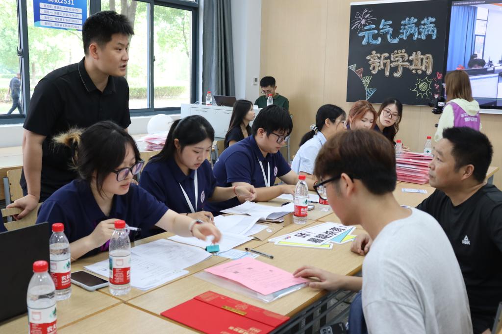 报到大厅里,各位老师和学生志愿者为新生仔细讲解报到流程与注意事项,794位新生有序完成身份核验注册、资料领取等各项环节。