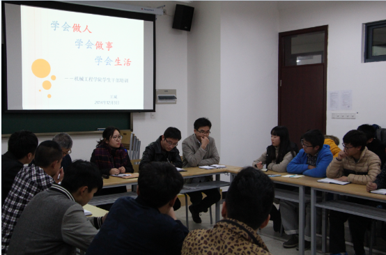 临近期末、总结过往、筹划未来,1月5日下午,机械工程学院长安校区召开学生干部学期总结交流会,校党委委员、机械工程学院党总支书记王斌、该院辅导员及学生干部与会交流。王斌书记首先为学生干部详细讲解了该院的“螺丝钉文化”、“精工文化”以及寝室“6s”管理文化,寄予新一届团学干部殷切的期望,希望他们能秉承该院文化精髓,内化于心、外化于形,在工作、学习和生活中做到严于律己,并时刻发挥榜样性的作用。
