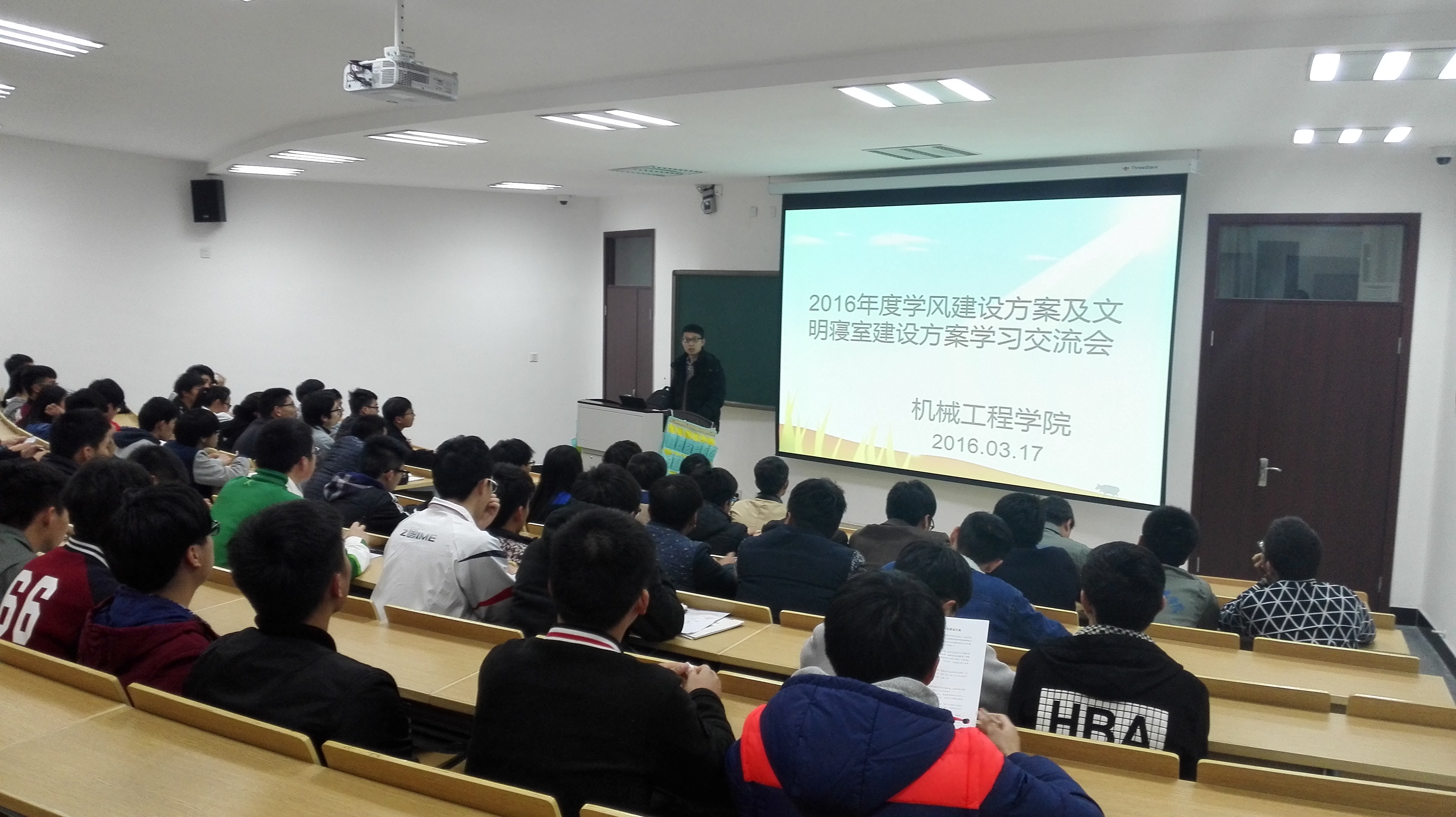 为建立良好的班风、学风和宿风,3月17日晚,机械工程学院在长安校区10号楼107教室举行了学风建设方案与文明寝室建设方案的学习会,相关辅导员组织各班班委参加了此次方案学习会。