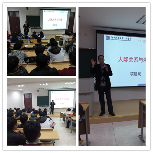 讲座中,项老师首先从中西方人际关系对比谈起,向同学们介绍人际交往与沟通在当今社会中的重要性。然后项老师通过一个个生动的例子,为同学们展示出生活中应该如何去沟通,才能获得最佳的效果,并提醒同学们在沟通过程中,不仅要做好情绪管理,更要依据不同的情形做好相应的沟通工作。同时项老师也强调人际交往与沟通能力是一个人生存与发展的必备能力,是决定一个人成功的必要条件,他希望同学们在大学中,不仅学好专业知识,更要培养一定的沟通能力,建立良好的人际关系,为将来的人生打好根基。