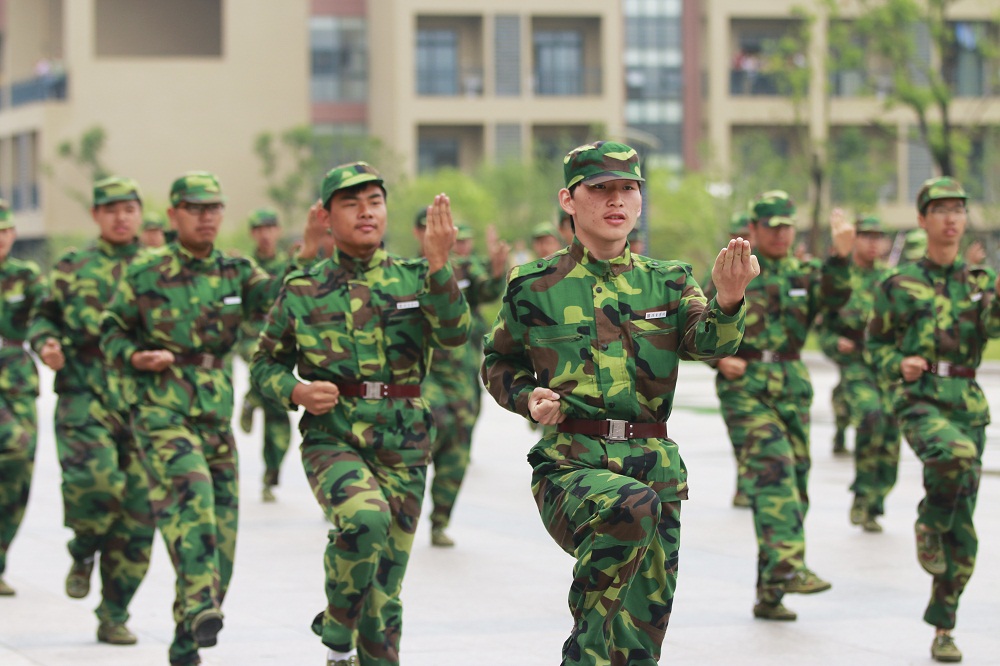 在军训汇报表演中,军体拳表演赢得了与会领导和在场学生的阵阵掌声。强劲的出拳、潇洒的转身伴随着嘹亮的呐喊,构成秋日校园一道亮丽的风景。