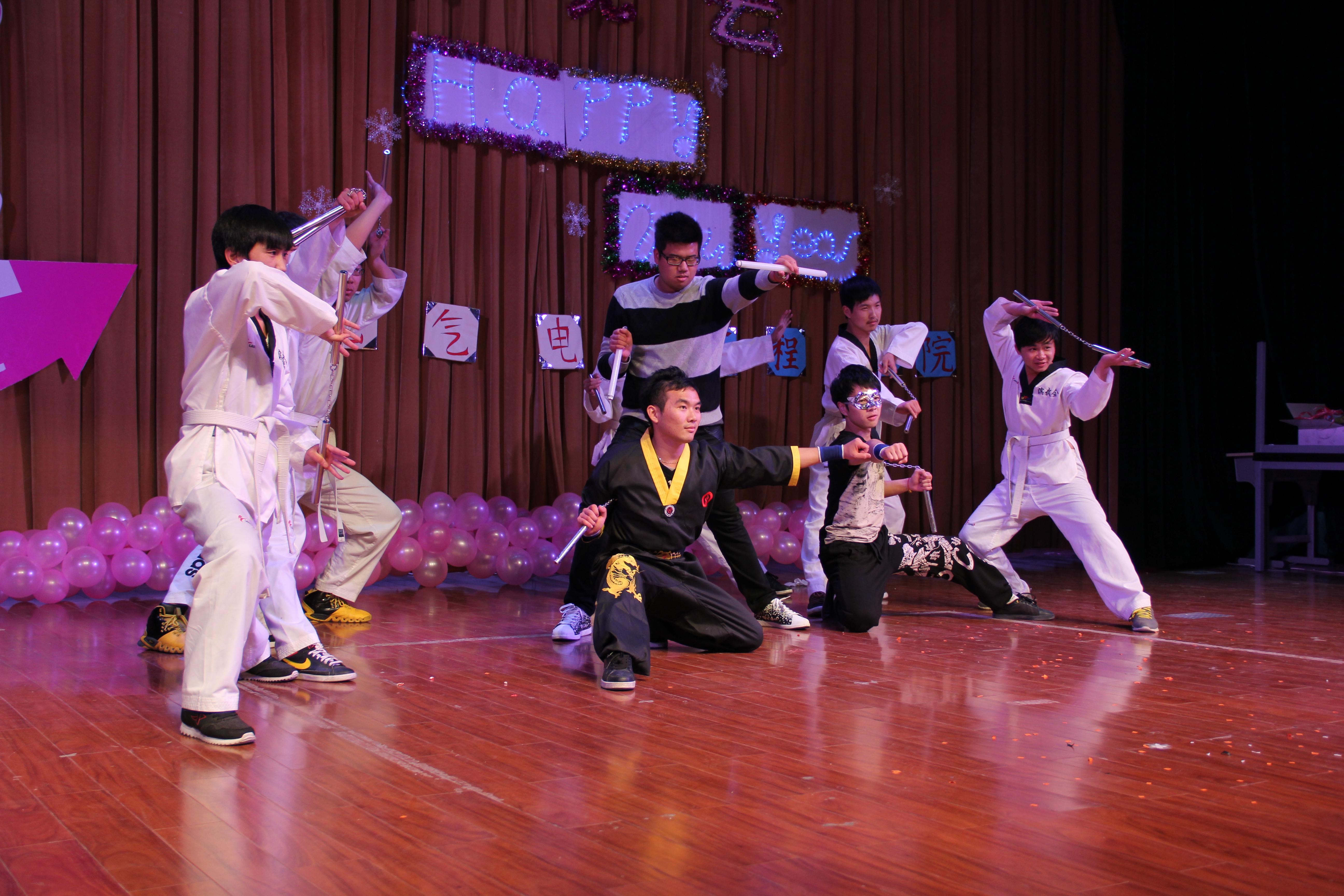 武术协会以“自强不息,厚德载物”传承中华民族文化和武术精神为宗旨,是喜爱民族文化和武术的广大师生的乐园。训练的项目有:双节棍,太极拳,刀术,剑术,枪术,太极剑,女子防身术,棍术,南拳,南刀等传统拳术和器械。我们以团结武术者继承、发掘武术,广泛推动群众性武术运动,不断提高技术水平,宣传武术知识,组织和策划传统武术项目的比赛、培训,选拔优秀武术选手,组队参加全省性和全国性竞赛展示活动。日常活动一般在星期五下午,按新老会员不同进行不同的基本训练并且隔周安排会员去滨江各校做交流和学习。并会对会员的技术进行考核和水平进行分析,以提升训练质量.协会将选拔几个表演组、比赛组、特技组。为参加学校或杭州高校的表演,及参加“省级武术锦标赛”或“全国大学生武术比赛”。