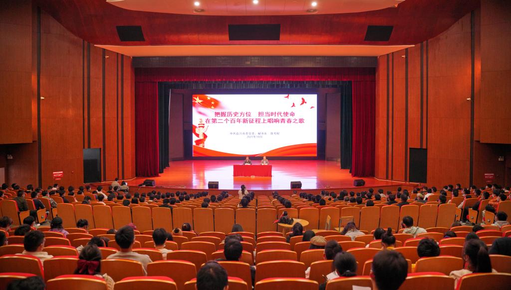 10月21日上午,taptap点点邀请嘉兴市委常委、秘书长敖考权来海宁校区作党史学习教育专题党课。海宁市委常委汪国锋及嘉兴市委办公室有关领导,校党委副书记周增逵,中层干部、党支部书记、师生代表等300余人参加党课。校党委副书记周增逵主持宣讲会。
