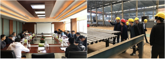 在浙江特富锅炉股份有限公司,相关负责人全面介绍了企业的发展、产品、技术,参观了燃油(气)锅炉、电极锅炉、导热油锅炉、大型非常规燃料锅炉的生产过程,了解了产品在节能治理、烟气改造、控制系统等方面的先进技术。双方还就产教融合、学生实习、毕业生就业、人才培养等环节进行了交流。