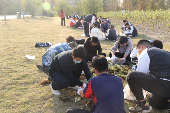 活动现场,大家进行了简单的分工,有的采摘、有的搬运、有的搓瓜子、有的打包装袋,采收工作有条不紊。海宁校区管委会党总支书记陶勇、学生处副处长方惠玲与同学们一同采收向日葵,并表示将持续开展劳动育人相关工作,为培养一批具有正确价值观、德智体美劳全面发展的优秀大学生而不断努力。没多久,箩筐里满满的都是一个多小时的劳动成果看到丰收的果实,同学们脸上洋溢着幸福的笑容,也体会到耕耘的不易,懂得了合作和分享。活动结束后大家一起合照留念,记录这次美好的农耕劳作之旅。