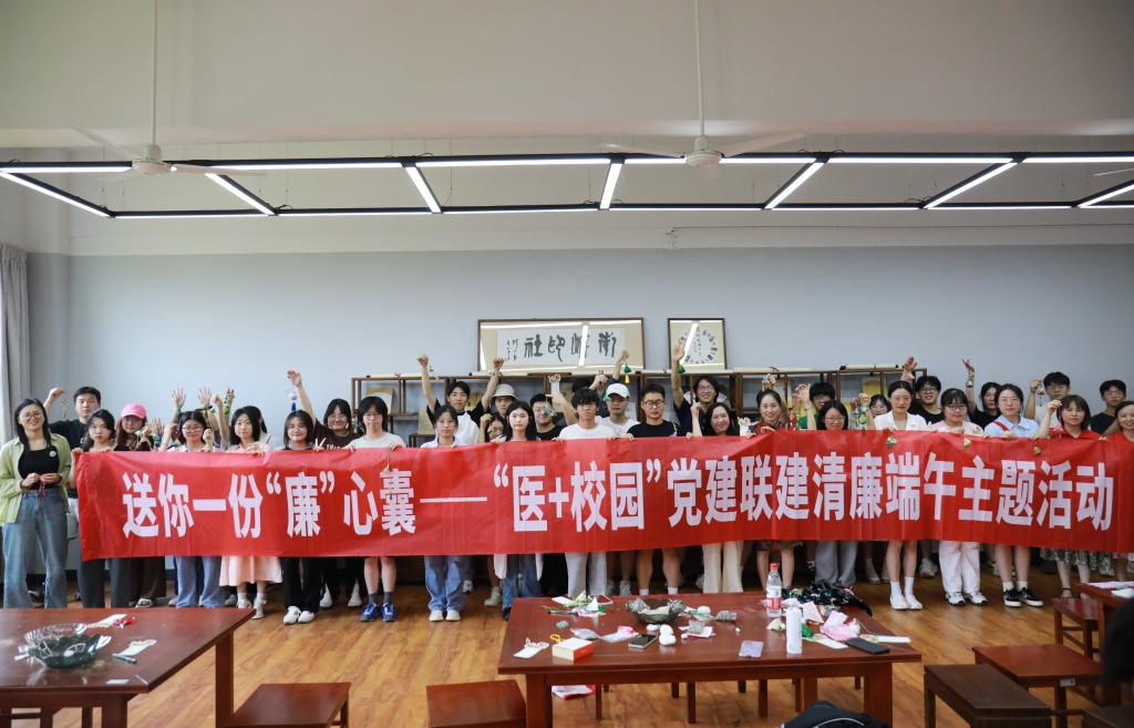 又是一年端午时。为弘扬中华优秀传统文化,树立节日新风,促进校地联系,引导机电师生清廉过节,6月14日下午,海宁校区16号楼305、306国学教室里,来自书画社、国学社、南岸诗社等十余个学生社团的百余名同学和海宁校区的部分教职工,与海宁市中心医院的医务工作者们共同参加一场主题为“送你一个‘廉’心囊”——“医+校园”党建联建清廉端午活动。海宁市中心医院副院长周燕亲临现场,海宁校区综合办、团委相关负责人员参与本次活动。