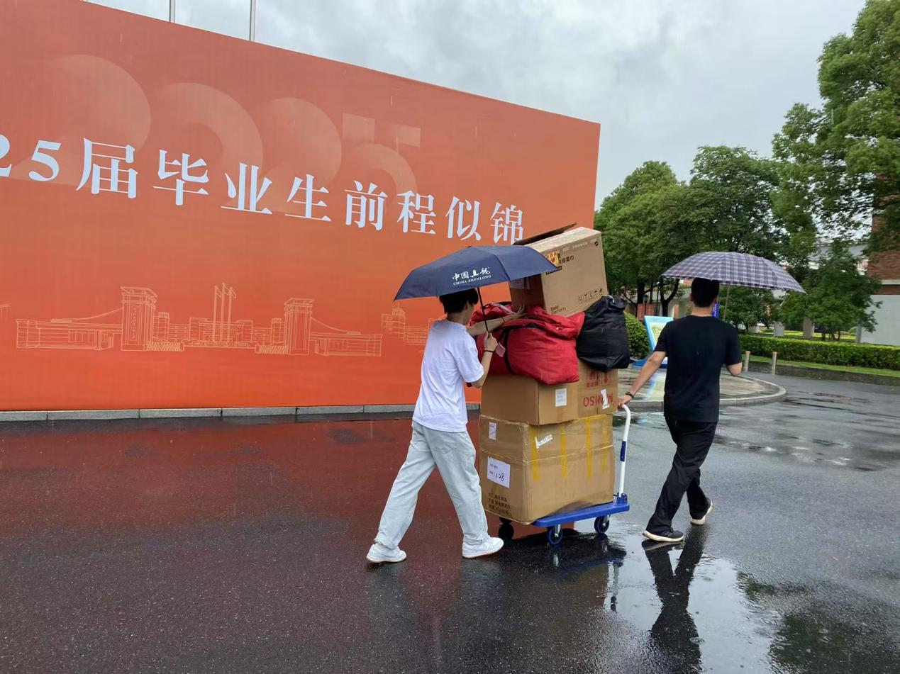 清晨,自动化学院“红小匠”先锋岗的志愿者们便活跃在校园各处。这支由毕业生党员组成的队伍,以“以求实铸匠心,以担当践使命”为宗旨,全程参与离校保障工作。在毕业礼品发放点,党员们有序分发纪念品,耐心解答同学疑问;学士服租借处,他们细致核对信息、整理服装,确保发放与回收流程顺畅;在校园各主要场馆,志愿者协助搬运行李、引导学生有序落座,用实际行动为毕业生离校提供便利。