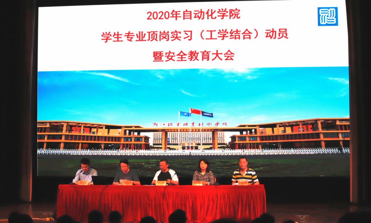 为进一步落实疫情期间专业顶岗实习工作,提升学生对企业实习、职业规划的认识与理解,提高学生实习期间的安全知识储备和防范意识。2020年6月4日自动化学院在学校5号楼报告厅举行了2018级专业顶岗实习动员大会暨安全教育大会。本次大会因疫情影响,采用线上、线下相结合的方式进行。现场与会主要人员有自动化学院院院长金文兵、副院长刘哲纬、党总支副书记于施佳、保卫处冯团友老师及18级学生代表,会议由自动化学院产学办主任王罗俊主持。