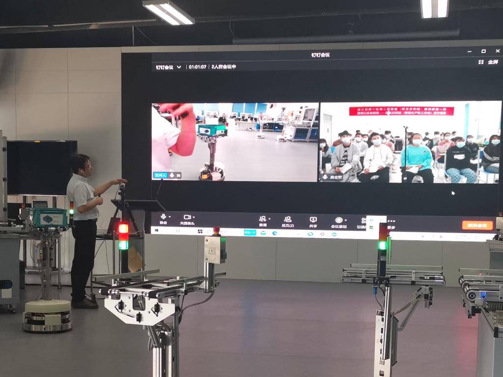 2021年9月29日上午,浙江机电职业技术学院与新疆阿克苏职业技术学院(智能工厂)空中课堂开讲。自动化学院刘哲纬老师为来自阿克苏职院机电工程分院电气自动化技术专业的30多位同学空中授课,将最前沿的技术和最高端的设备跨越地域分享给远在新疆、求知若渴的学子们,阿克苏职院机电工程学院董燕院长、吴志军副院长等10余位老师共同参加。