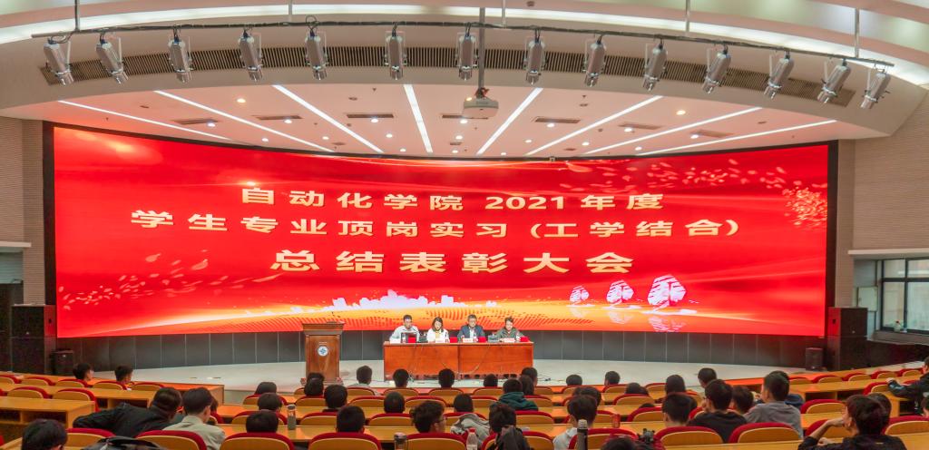 10月28日,自动化学院在综合楼四楼报告厅召开了2021年度学生专业顶岗实习总结表彰大会,自动化学院党总支书记钱永林、自动化学院副院长刘哲纬、自动化学院党总支副书记于施佳、100多位学生代表参加了此次大会,大会由产学办主任王罗俊老师主持。