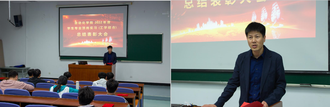 10月26日,2022年度自动化学院学生专业顶岗实习总结表彰大会在五号楼四号报告厅隆重召开,自动化学院副院长王耀军出席并讲话,学生代表参加。大会由自动化学院产学办主任王罗俊主持。