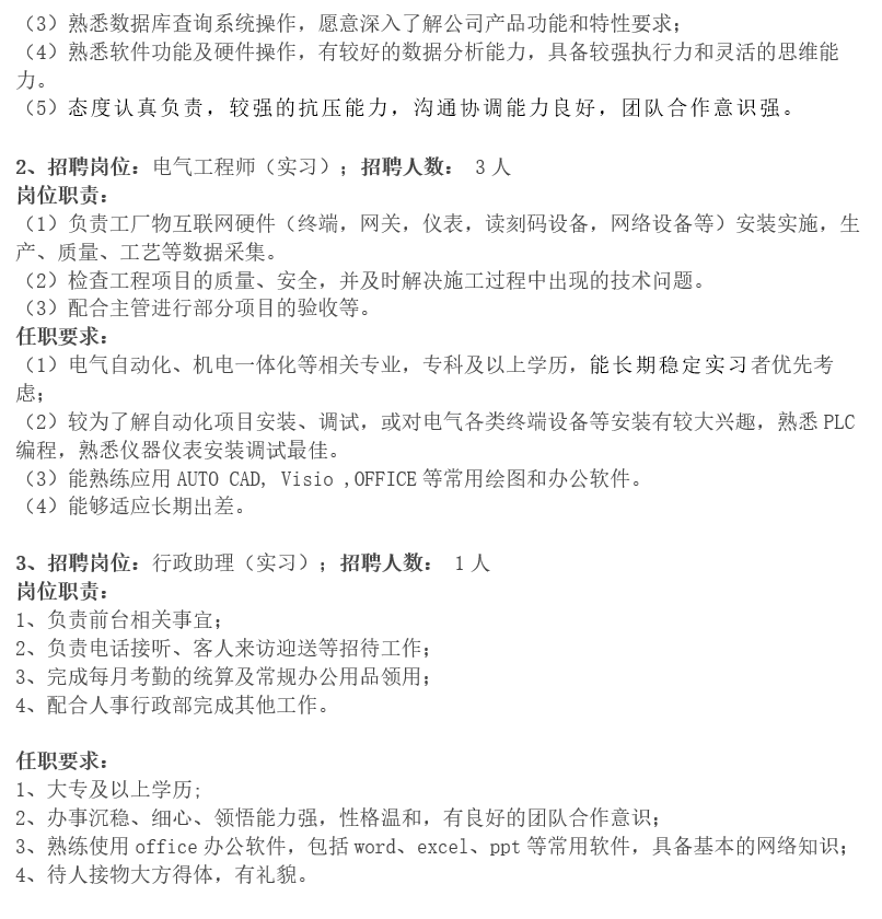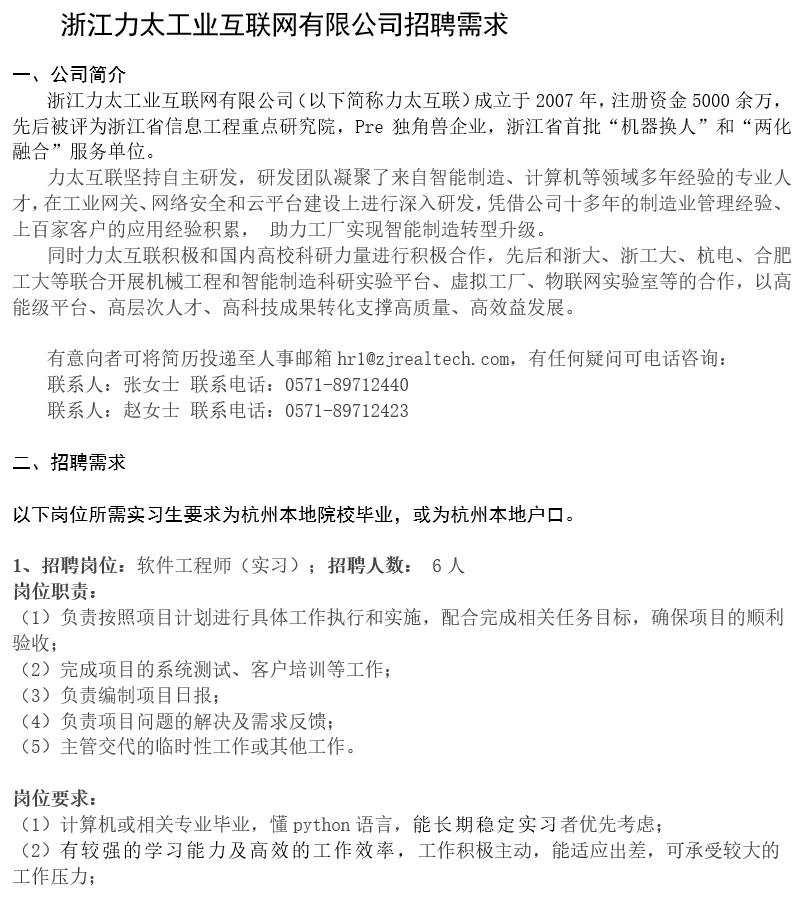 浙江力太工业互联网有限公司实习生招聘需求表