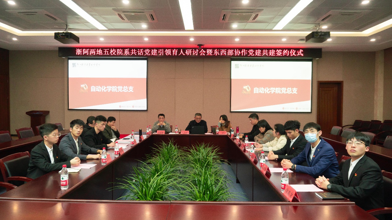 五所院系党建负责人分别介绍了各自院系党建活动开展基本情况和工作成效,并在线上活动现场签约了党建共建引领育人协议。自动化学院党总支书记钱永林着重分享了自动化学院首届浙江省党建工作“标杆”院系党建引领育人工作成效,深受阿方好评。