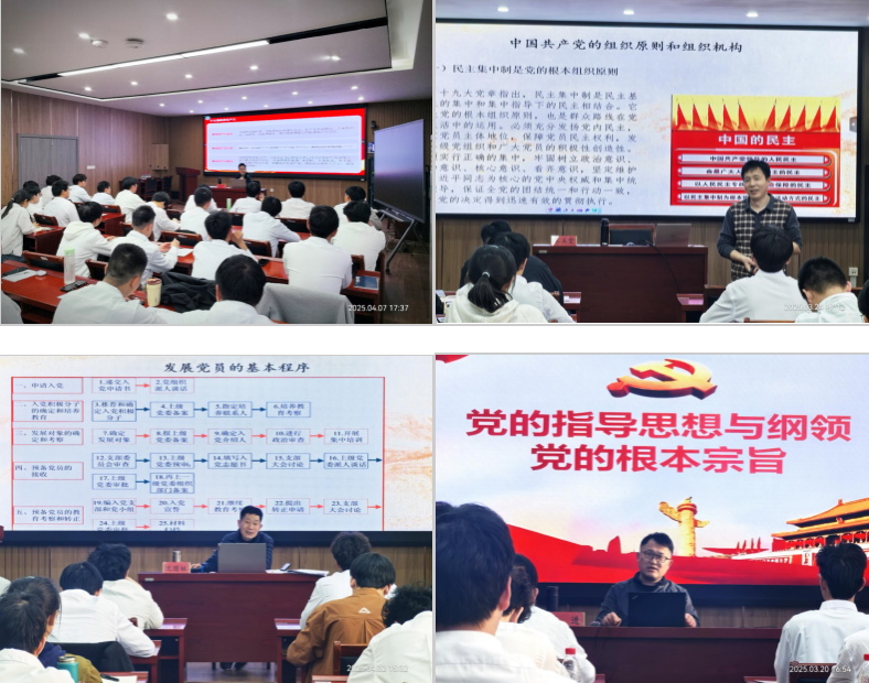 在理论教学环节,学院邀请了多位资深专家和优秀教师为学员们授课。朱玉堂老师以“党的组织制度和党纪党风学习专题”为切入点,深入剖析党的组织架构和纪律要求,为学员们筑牢了纪律防线;孟进老师围绕“党的指导思想与纲领、党的根本宗旨”,带领学员们重温党的光辉历程,感悟党的初心使命;沈国林老师详细解读“党员的权利、义务和入党的基本条件”,让学员们对党员身份有了更清晰的认识;陈罡老师聚焦“深入贯彻中央八项规定精神学习教育”,引导学员们从理论学习、实践应用和责任担当三个维度深化对中央八项规定精神的理解,培养学员们廉洁自律、艰苦奋斗的优良作风,将思政教育的道德规范与行为准则内化于心、外化于行;罗鹏举老师开展“深化党纪学习教育成果,筑牢意识形态安全防线”专题党课,深入浅出地阐述了深化党纪学习教育成果与筑牢意识形态安全防线的重要性及必要性,为学员们敲响警钟,使学员们深刻认识到意识形态安全是国家安全的重要组成部分,增强了政治敏锐性和鉴别力,这是大思政教育在政治素养和意识形态领域的关键培育;王耀军老师以“新质生产力引领未来变革”为主题,结合专业特色,为学员们指明了未来发展的方向,将思政教育与专业教育深度融合,引导学员们将个人的成长与国家的战略需求相结合,培养创新精神和实践能力,彰显了大思政教育服务国家发展大局的时代使命。6次理论课共计18课时,老师们旁征博引、深入浅出,为学员们带来了一场场思想盛宴。