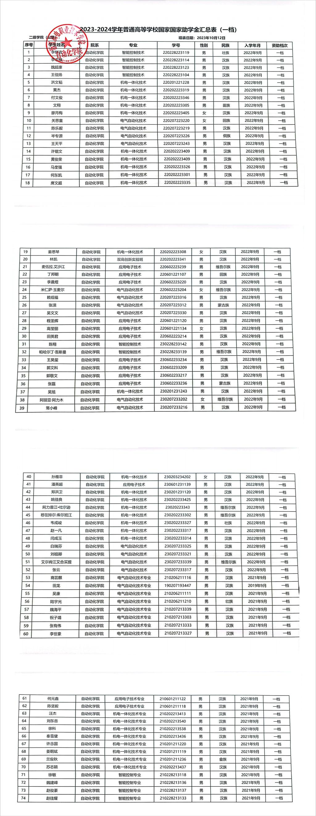 各位老师、同学,根据学校《关于做好2023年浙江省普通高校奖助学金评审工作的通知》文件相关要求,经学生本人申报、班级评议、分院审核评定,现将自动化学院2023-2024学年助学金候选人公示如下,公示期为2023年10月16日-10月20日。如有异议,可据实向分院反馈意见,联系人:谢钟涛,电话:0571-87772618。