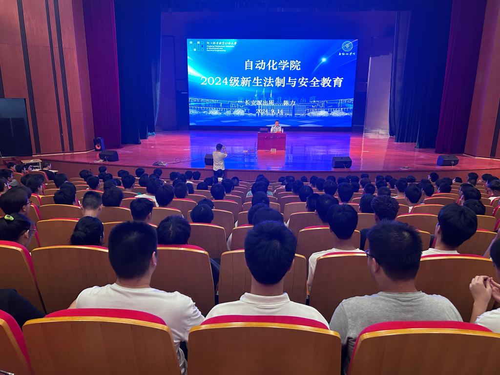 为了强化2024级新生的安全意识,提升同学们的安全素养,9月14日晚,自动化学院于海宁校区小剧场开展了一场题为“2024级新生法制与安全教育”的专题讲座,邀请到长安派出所陈力警官主讲,学院辅导员、班主任、团学干部及2024级全体新生共同参与,讲座由学工办主任孟进主持。