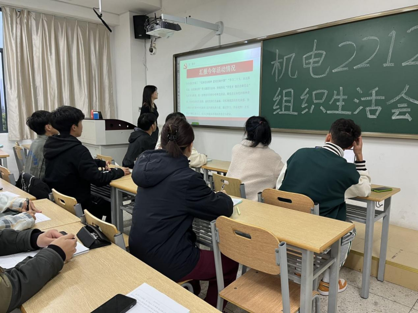 自动化学院机电2212团支部书记郑芳芳就今年开展“学习二十大、永远跟党走、奋进新征程”主题教育实践活动情况和本次组织生活会准备工作作了专题报告,并结合团支部工作和个人实际作交流发言。