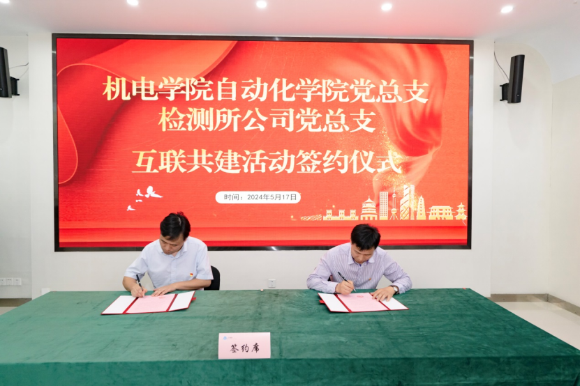 5月17日上午,浙江机电职业技术学院自动化学院党总支与浙江省机电产品质量检测所有限公司党总支互联共建活动签约仪式在省机电检测所公司滨江基地举行。自动化学院党总支副书记罗鹏举,公司党总支书记、董事长姜耀林,副总经理何朝辉,副总经理、党总支副书记盛英英,及相关部门负责人、党员教师参加活动并座谈。