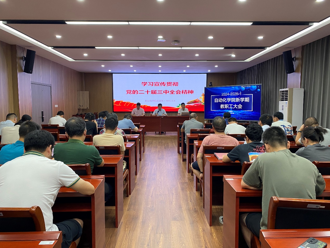 9月6日上午,在新学期开学之际,自动化学院党总支召开全体教职工大会,深入学习贯彻党的二十届三中全会精神,研究部署落实中央、省委以及机电集团党委和学校党委关于学习宣传贯彻落实二十届三中全会精神的有关要求,自动化学院党总支书记陈罡领学并主持会议。学院副院长王耀军、党总支副书记罗鹏举、党总支委员、各支部书记、教研室主任、全体教职工参加会议。