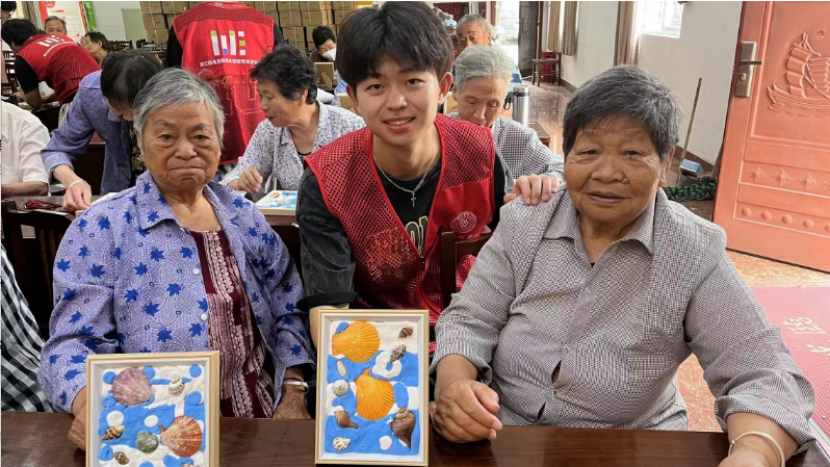 包粽子活动结束后,志愿者同学们又协助村内工作人员根据村里老人喜好为他们量身策划了、端午习俗科普、“制作沙滩贝壳画”等活动,寓教于乐,让虹金村的的老年人们在休闲玩乐中锻炼了手指和头脑的灵活度,大家脸上都洋溢着快乐的笑容。